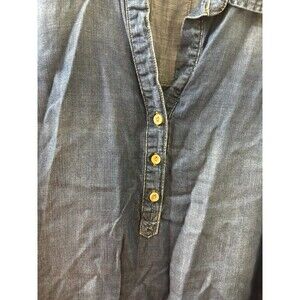 Cloth And Stone Anthropologie MEDIUM Long Sleeve 1/4 Button Up Denim Tencel V-Neck