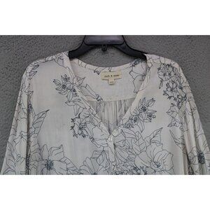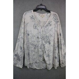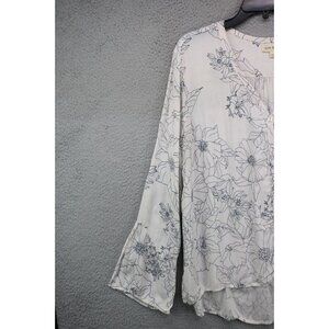 Cloth and Stone Anthropologie Ivory Floral Belled Sleeve Button Up Top-Size XXL