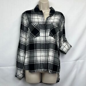 Cloth and Stone Black and White Plaid flannel shirt size XS EUC