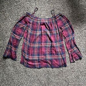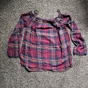 Cloth and Stone Blouse Top Women's Small Multicolor Plaid Boat Neck Casual Wear.