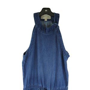 Cloth and Stone Blue Chambray Halter Mock Neck Denim Jumpsuit Womens S Wide Leg