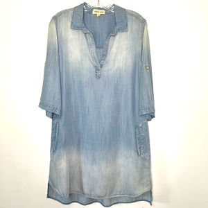 Cloth and Stone Blue Shirt Midi Dress Chambray Denim 3/4 Sleeves Collared Size M