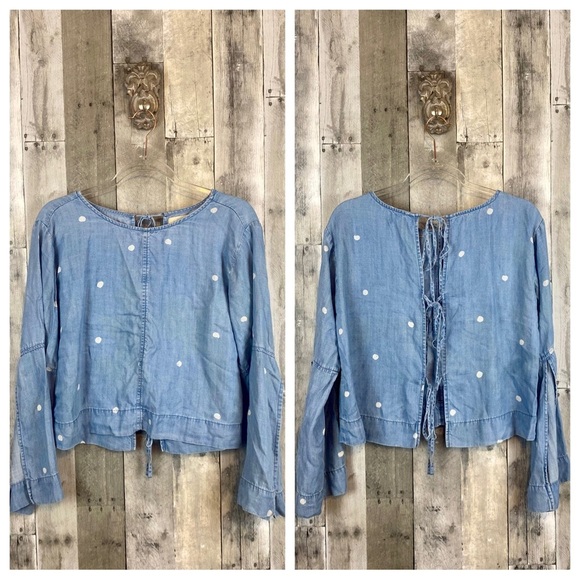 Cloth and Stone Chambray Dot Bow Tie Back Blouse in Blue Size XS.
