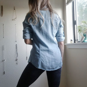 Great condition still but has some staining in the arm pit area, its very faint but can see it more in the last picture. Near the shirt tag there is some discoloration and a small hardly noticeable stain on the front left of the shirt. All buttons are well attached - I have video checking all buttons.