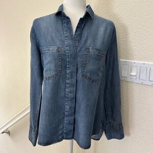Cloth and Stone Denim Chambray Split Back Button Down Top Sz XS excellent cond