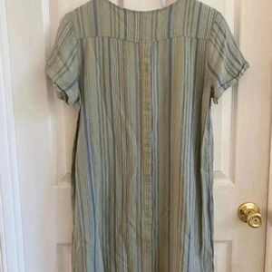 Cloth and Stone Linen Blend Shift Dress size Medium Green Button Back Short. This dress is pre-owned. Great condition. No flaws. Measurements: 19.5 inch chest 20 inch waist 35 inch length