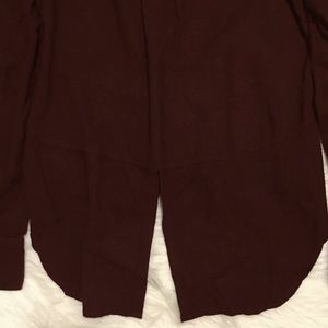 Brand new WITHOUT tags, women's size Small & Medium. This Anthropologie Cloth and Stone Shirttail Split Back Button Down Shirt comes in a gorgeous maroon burgundy red color. Hidden front buttons & front pockets. Has a button on the upper arm so you can easily roll up the sleeves for an effortless look! The split back shirt tail back makes this so unique! So soft & comfortable, made of 100% Rayon. 1st photo is to show on it looks like on, the one for sale is maroon!