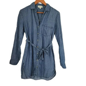 Cloth and Stone size xs Chambray Denim Printed Belted button down Tunic Top