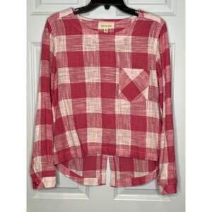 Cloth and Stone x Anthropologie Pink White Check Linen Blend Shirt Small
