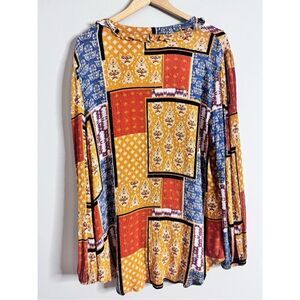 Cloth and portrait long sleeve boho patchwork blouse sz XXL