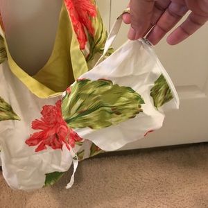 Beautiful cloth bag with beads and glitter. Never used. There's a pouch inside the bag for keys and cell phone.