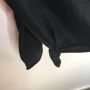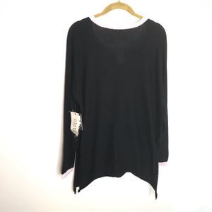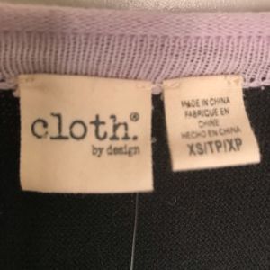 Cloth by design black sweater . Size XS. NWTS. Black long sleeve sweater with pink rolled edge trim at neckline and wrist. Side tie and can be worn several ways as shown in the last picture. Cotton 100%. Hand wash cold. 8oz.