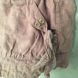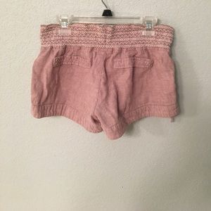 These are soft and comfy shorts with a very stretchy elastic waistband, tie detail, buttons, and imitation pockets in the back.