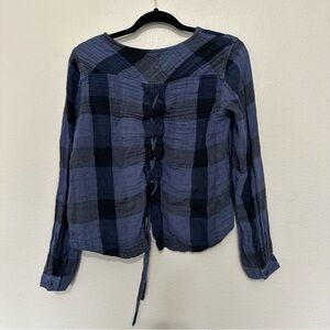 Cloth & stone women’s Buffalo plaid tie back long sleeve blouse size M medium