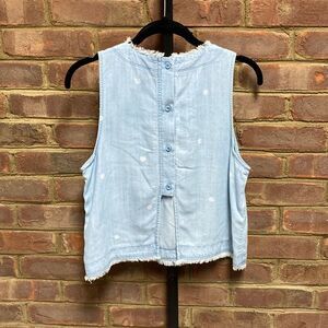 Cloth & Stone Chambray Polka Dot Frayed Sleeveless Top Size XS