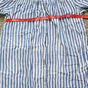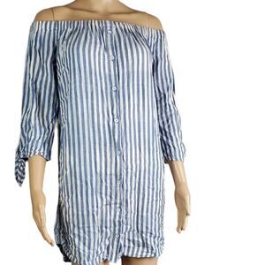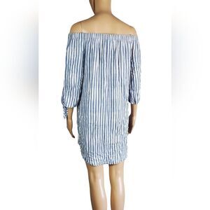 (EE) Cloth & Stone Blue & White Striped Off Shoulder Dress, Size Small