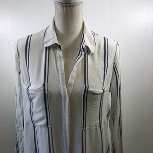 Cloth & Stone White Navy Striped Buttoned Shirt Women’s Size XS