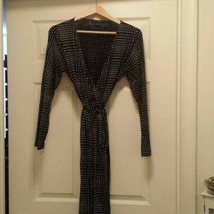 Navy and off white dots..Wrap dress, very flattering. Very soft material . feels good against the skin