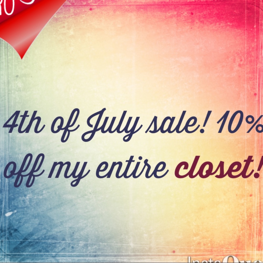 4th of July only. Freedom sale! 10% off my closet. Message me with your items for a discount!