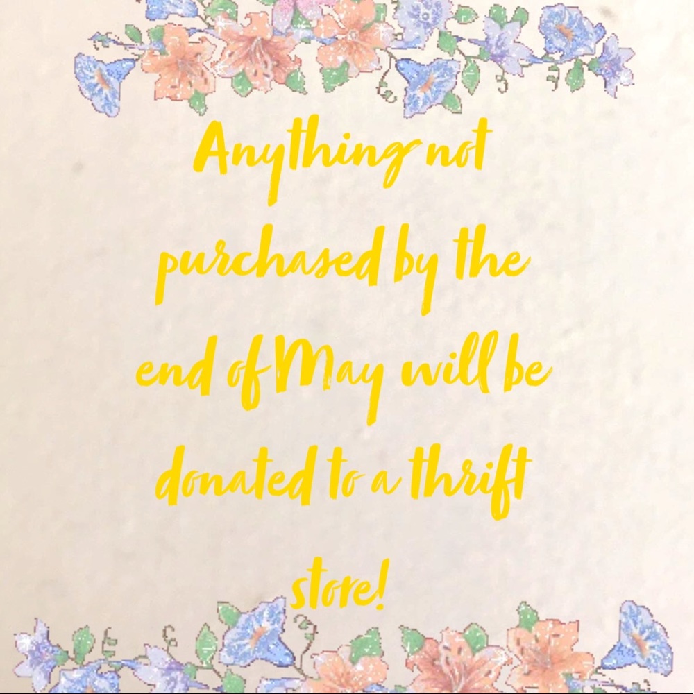 Any of my listings that do not sale by the end of May will be donated to a thrift store. My June will be very busy since I’ll be out of Country and I just rather deal with all that before I start dealing with packing and what not. So please make an offer!!