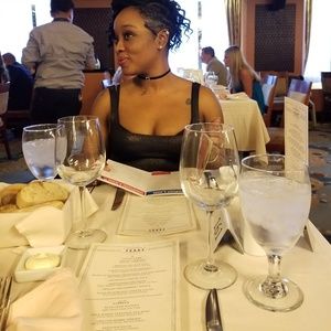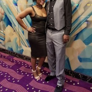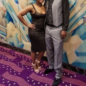 American Apparel black with gold glitter spandex dress. Worn only once and is fresh out of the cleaners. I wish it could still fit me. Great buy!