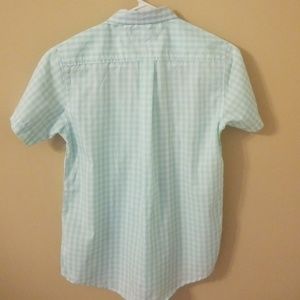 Tommy Hilfiger boys mint green and white plaid button up shirt.