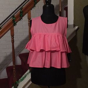 Pink Ruffle Top 100 % Cotton. Comfortable and breathable material. Simple yet elegant and classy. Available in small, medium and large. Large is shown in picture. Price is firm since tops are brand new with tags.