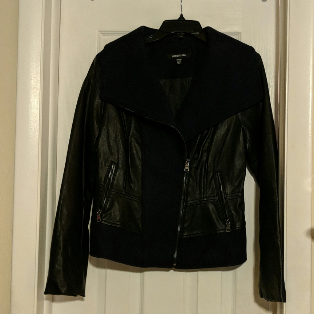 @styledbyjme hi the jacket is leather and felt the leather is black and the felt is blue. handsome jacket