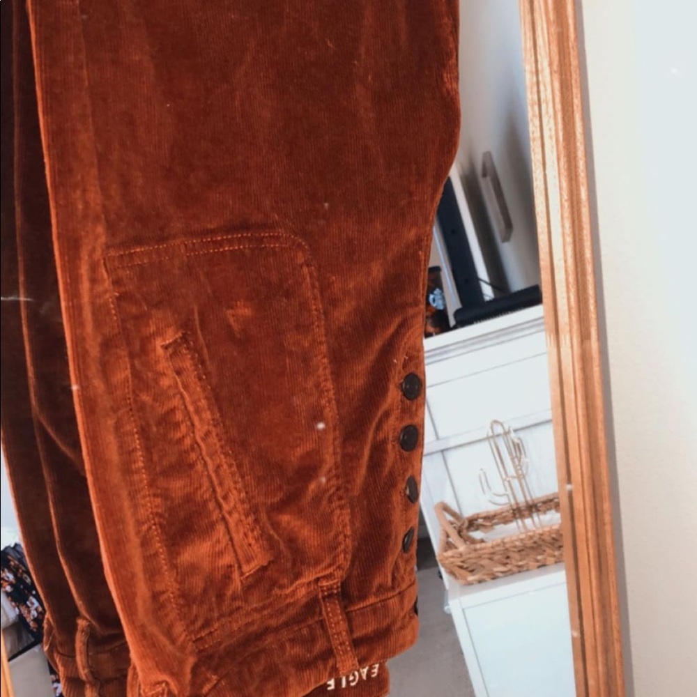Rompers size medium never worn 15$ Burgundy red corduroy high waisted button fly American Eagle pants size 10 20$ cream button front American Eagle tank top 8$ never worn silky blouse racer back top Never worn large 20$ American Eagle bodysuit sleeveless never worn size large 15$