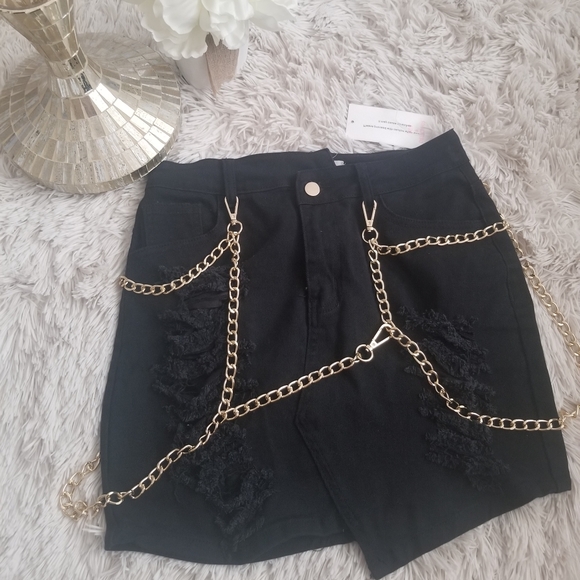 Chain me up black ripped mini skirt