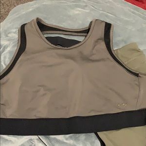 Matching sports bra and legging in a olive green color very good condition only worn twice around the house *pet friendly home*