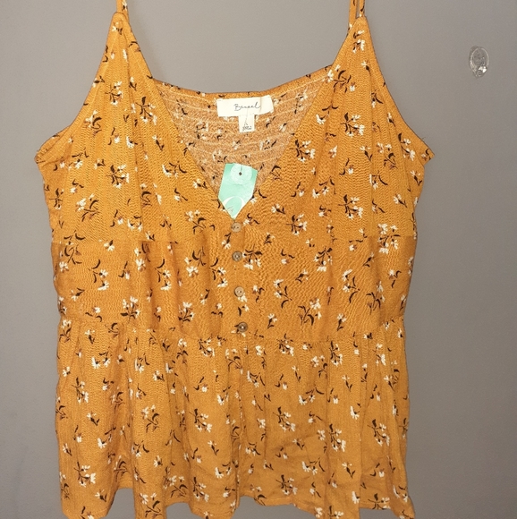 Beautiful mustard yellow tank top with white flower prints