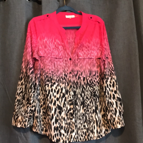 Wrinkle free, leopard pattern, wear long or rolled up sleeves with a button, professional or casual.