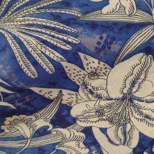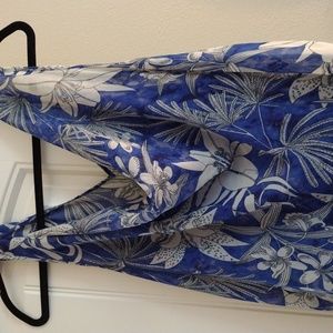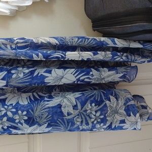 blue and cream maxi asymmetrical dress with detachable slip underneath. size 18wide