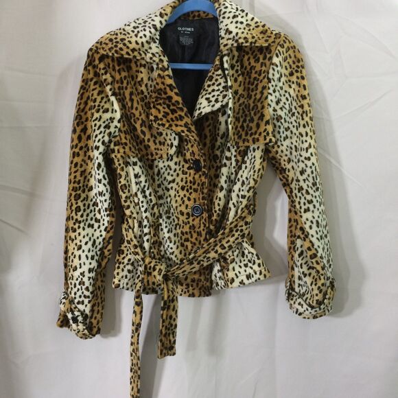Clothes By Revue Faux Fur Leopard Print Short Trench Style Belted Coat Size M