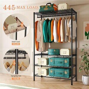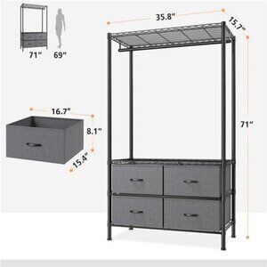 【Sturdy Metal Frame 445lbs Total Load Capacity 】Each layer of metal shelf bears 94lbs, and hanging rod bear 73lbs. The entire clothing racks for hanging clothes is made of high-grade metal. The sturdy all-metal frame can be used for many years without worrying about deformation or wear. The 4 folding fabric drawer is simple to install, and it is friendly to toys and clothes. You don't have to worry about scratches on the floor of metal storage rack, which is perfect choice for gift-giving or housewarming.