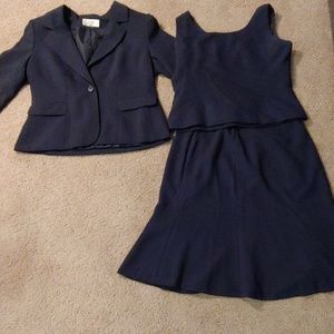 Le Suit's beautiful navy blue 3pc suit. Jacket, tank vest and skirt. Swiss dots 😍 Reply for more details and pics.