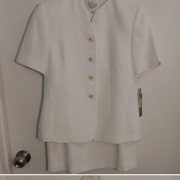 Le Suit. 2pc set. White with gold buttons. Brand new with tags. condition.