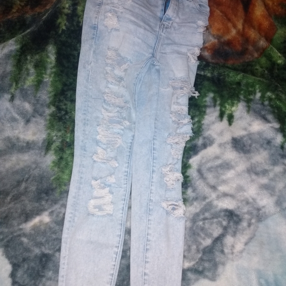 High rise American eagle jeans , black one is size 1 lighter one is size 0. Fits very bell from waist .