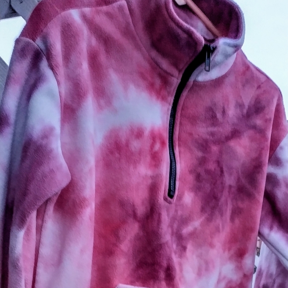 Pink different color of pinks tie died looking sweater soft and comfy zipper neck for easy slip over your head great condition.