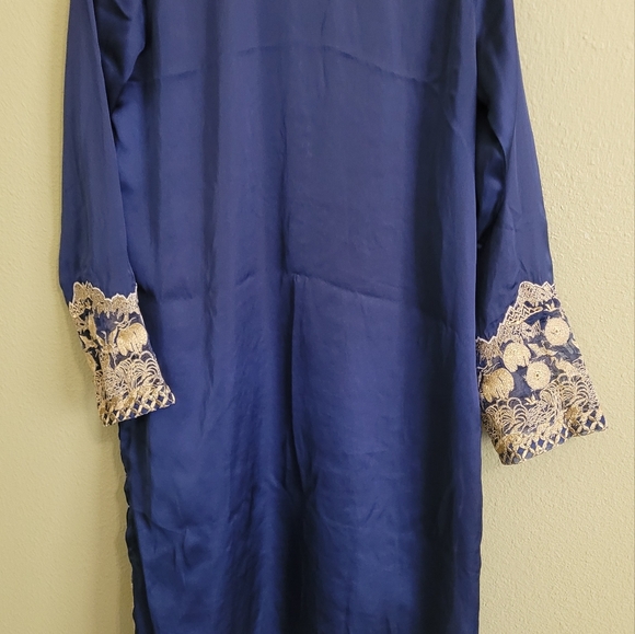 sillk qameez with beautiful golden threadwork on front side n on slevves too,sooo beautiful n elegant looking kurta,,