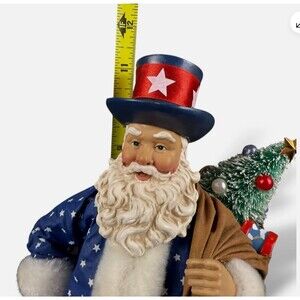 The Clothtique Possible Dreams 1999 Yankee Doodle Santa 11" figurine is a unique and handmade collectible piece that captures the essence of American Christmas traditions. With its asymmetrical shape and detailed hand-painted design, this Santa figurine stands out as a patriotic and seasonal decoration. Signed by the brand and featuring multicolor mixed materials, this retired piece from 1999 is sure to bring a touch of nostalgia and charm to any holiday display
