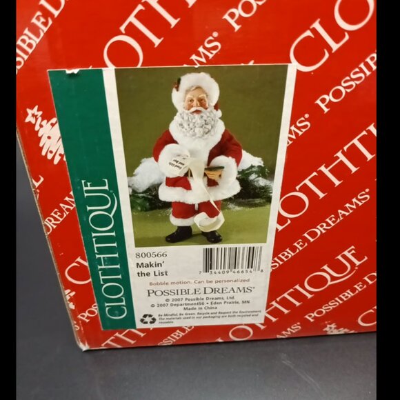 Clothtique Possible Dreams - 800566 “Makin’ the List” Santa Dept 56 Bobblehead