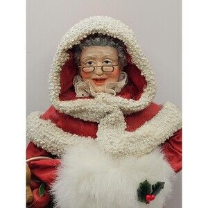 The Clothtique Possible Dreams MRS SANTA CLAUS 1992 Vintage Coat & Basket Christmas figurine is a large, multicolor collectible featuring Mrs. Santa Claus. Manufactured in 1990 by Possible Dreams, this original piece is part of the Christmas collection and exudes a vintage charm. Made from Clothtique material in Taiwan, this figurine captures the essence of the holiday season and is sure to delight collectors and fans of Mrs. Claus alike.