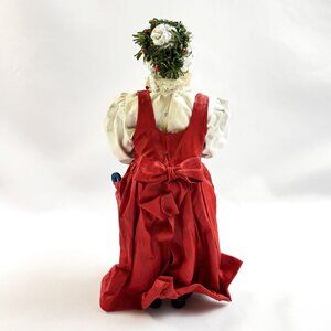 This charming Mrs. Santa figurine captures the warmth of holiday tradition with exquisite detail. Dressed in a red apron and white blouse holding a sweet doll—symbolizing nurturing and storytelling. The signature feature is a proprietary stiffened fabric that’s hand-sewn and treated to hold lifelike folds and textures. This gives the clothing a realistic drape and movement, unlike traditional molded figurines.