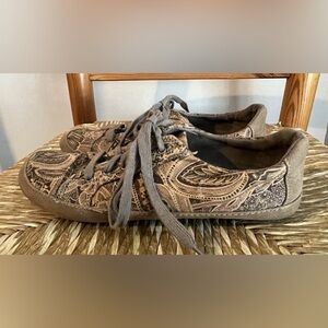 • Color: Brown/multi-tone paisley with taupe-gray laces