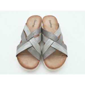 Cloud 90 Womens 11 Sandals Gray Faux Leather Strappy Slide Wedge Heel Slip On