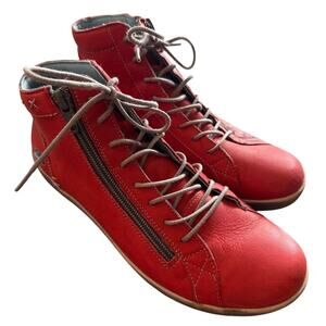 Cloud Aika Womens High Top Sneaker Red Leather Size 7.5 Comfort Easy On Side Zip