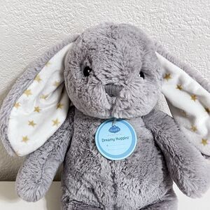 Cloud B Dreamy Hugginz Grey Bunny Rabbit Gold Star Ears Stuffed Plush Lovey 14". Tag along the neck is still attached, soft, and sweet. No issues that I can find, has just sat in a bin. Good Used Condition.
