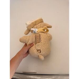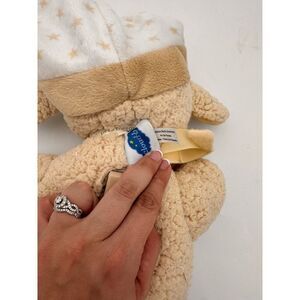 This cuddly beige Sleep Sheep plush toy from Cloud B is more than just a soft companion. It features a built-in sound machine that plays soothing sounds to help children fall asleep peacefully. With its gentle expression and attached sleeping cap, this plush friend creates a comforting bedtime environment. A perfect aid for restful nights.